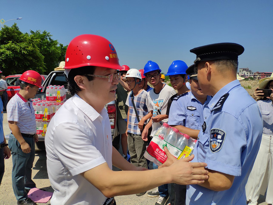 臨桂新區(qū)工委副書記、新區(qū)管委會副主任、新區(qū)黨總支書記唐標明,臨桂新區(qū)工委委員、新區(qū)管委會副主任、機關工會主席文杰,新城投資集團黨支部書記周道林,臨桂新區(qū)工委組織人事部部長、黨總支紀檢委員梁利,新城投資集團黨支部委員、新城投資集團工會主席譚力源等領導將西瓜、飲用水等防暑降溫用品送到一線建筑工人手中。