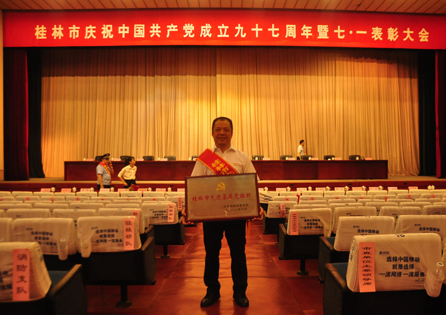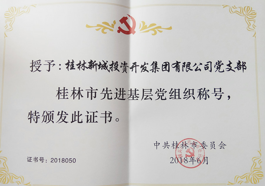 2018年6月29日上午,在桂林市直機(jī)關(guān)小禮堂舉行的桂林市慶祝中國共產(chǎn)黨成立九十七周年暨七·一表彰大會上,表揚了全市先進(jìn)基層黨組織、優(yōu)秀共產(chǎn)黨員、優(yōu)秀黨務(wù)工作者,新城投資集團(tuán)黨支部榮獲“桂林市先進(jìn)基層黨組織”稱號,黨支部書記周道林代表新城投資集團(tuán)黨支部參加了此次表彰大會。