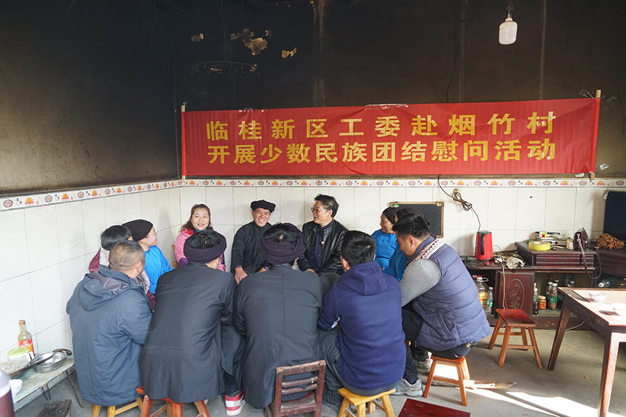 2020年12月25日,市紀(jì)委監(jiān)委駐桂林市臨桂新區(qū)管理委員會紀(jì)檢監(jiān)察組副組長唐良平,臨桂新區(qū)管委會機(jī)關(guān)黨委委員、工委組織人事部部長梁利,桂林新城投資集團(tuán)黨總支委員、副總經(jīng)理張新悅等一行組成慰問組,赴資源縣兩水苗族鄉(xiāng)煙竹村慰問村兩委干部、駐村第一書記和駐村隊(duì)員,與苗族村民開展民族團(tuán)結(jié)座談活動。