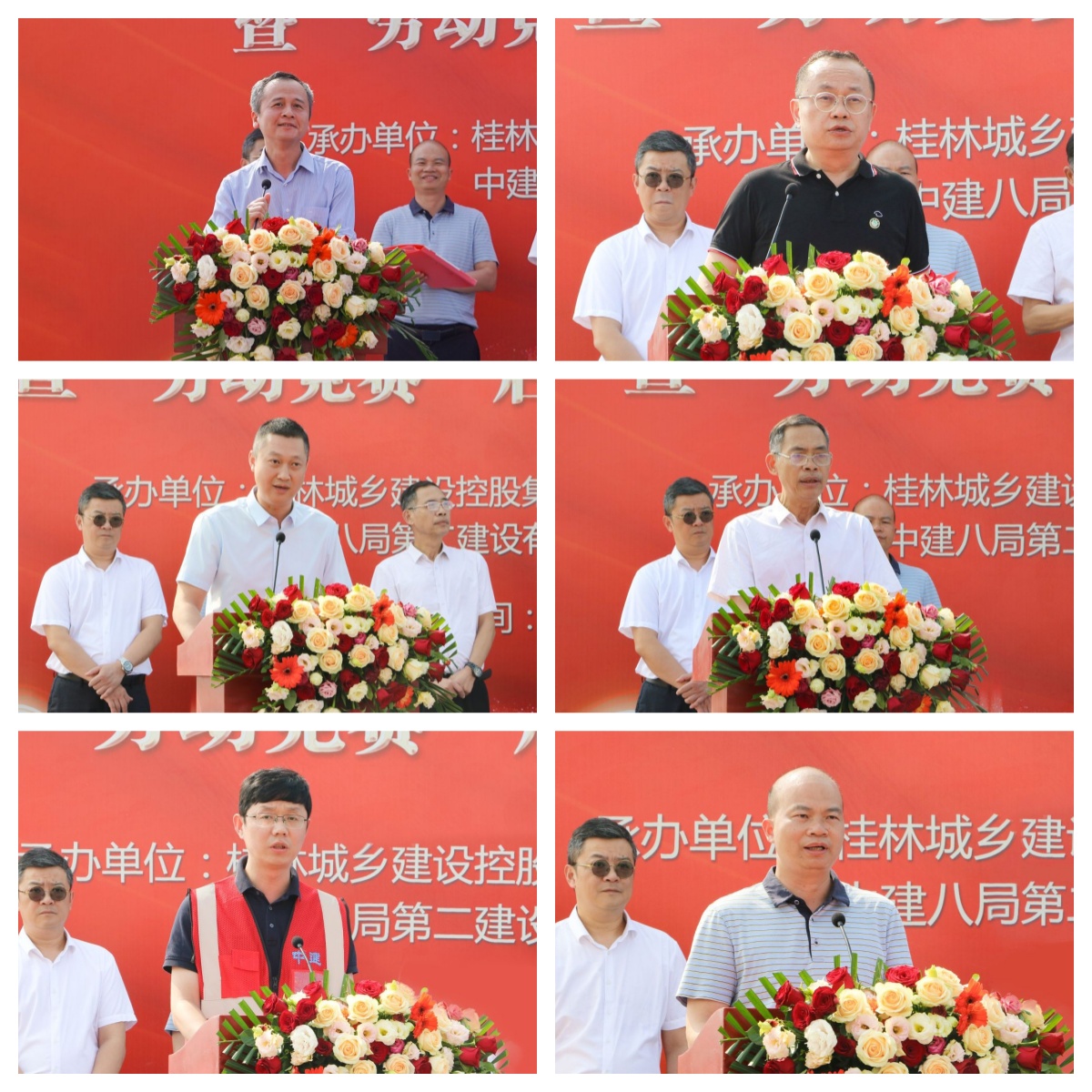 4月30日下午,桂林城鄉(xiāng)建設(shè)控股集團(tuán)有限公司下屬桂林學(xué)院二期建設(shè)項目開工儀式暨“勞動競賽”啟動儀式、“五一”勞動節(jié)慰問活動在桂林學(xué)院施工現(xiàn)場隆重舉行。城建集團(tuán)領(lǐng)導(dǎo)肖笛波、諸葛長、粟義春、黃江訓(xùn)、董潤秀、王巍、鄭善華,新城投集團(tuán)領(lǐng)導(dǎo)朱毅、譚力源、劉敏,桂林建筑規(guī)劃設(shè)計集團(tuán)有限公司黨委書記陸衛(wèi)堅,中建八局第二公司廣西公司領(lǐng)導(dǎo)王紹舉、徐海銀、柳云岳,桂林學(xué)院領(lǐng)導(dǎo)楊樹喆、唐文紅、劉文革、楊慶慶、何玲、蔣毅等共同出席儀式活動。儀式活動由桂林學(xué)院二期建設(shè)項目部總負(fù)責(zé)人、新城投集團(tuán)黨委委員、副總經(jīng)理葉青旺主持。